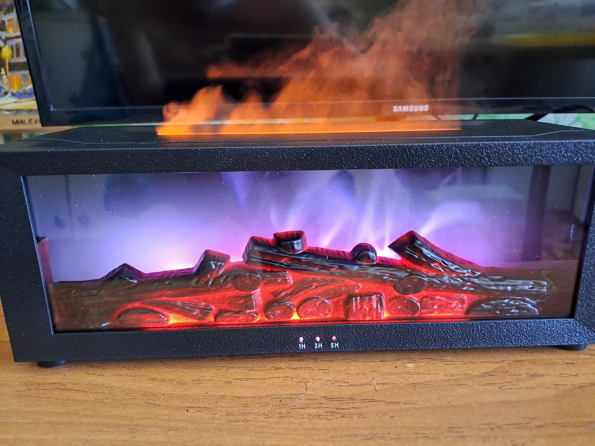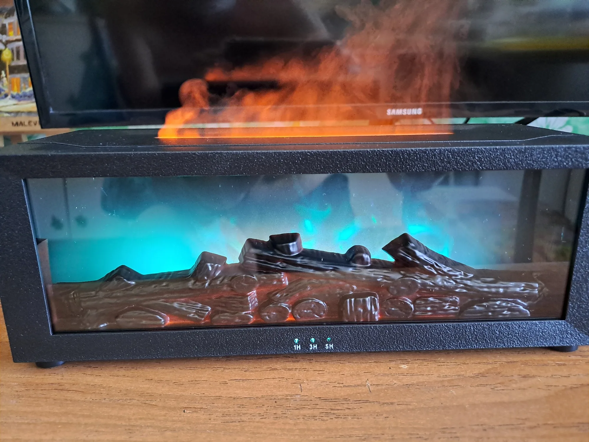 Minuterie intégrée (1H / 3H / 5H) + réglage de la brume et de la lumière.